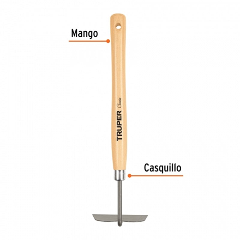 El Azadoncito C/Mango 15" Gtl-Ho Truper es una herramienta de jardinería de alta calidad que te ayudará a mantener tu jardín en perfectas condiciones. Este azadón cuenta con un mango de 15 pulgadas de largo, lo que te permite tener un mayor alcance y comodidad al trabajar. Además, su cabeza está fabricada con acero al carbono de alta resistencia, lo que garantiza su durabilidad y eficacia en el trabajo. Su diseño ergonómico y su peso ligero hacen que sea fácil de manejar y reducen la fatiga durante su uso. Este azadón es ideal para remover maleza, preparar la tierra para la siembra y para otras tareas de jardinería.