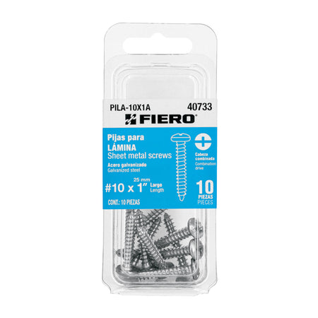 Blíster Con 10 Pijas Para Lámina, #10 X 1', PILA-10X1A, Fiero