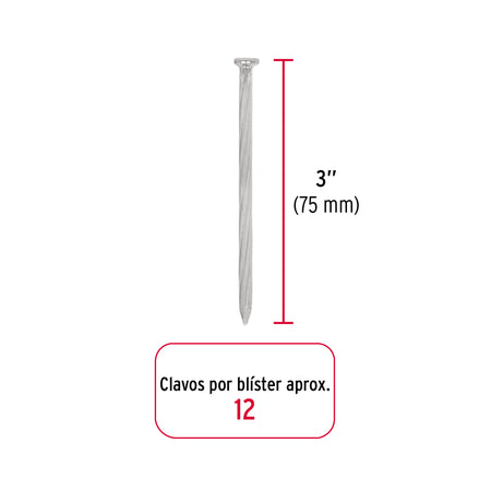 Blíster Con 12 Clavos Galvanizados Para Concreto 3', CLC-3GA, Fiero