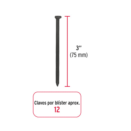 Blíster Con 12 Clavos Negros Para Concreto 3', CLC-3NA, Fiero