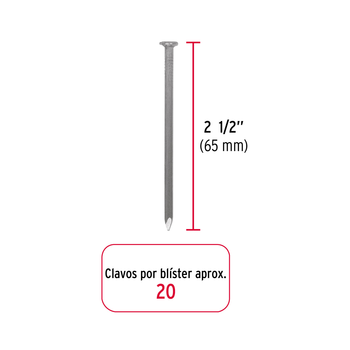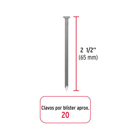 Blíster Con 20 Clavos Estándar 2-1/2' Con Cabeza, CLE-2-1/2A, Fiero
