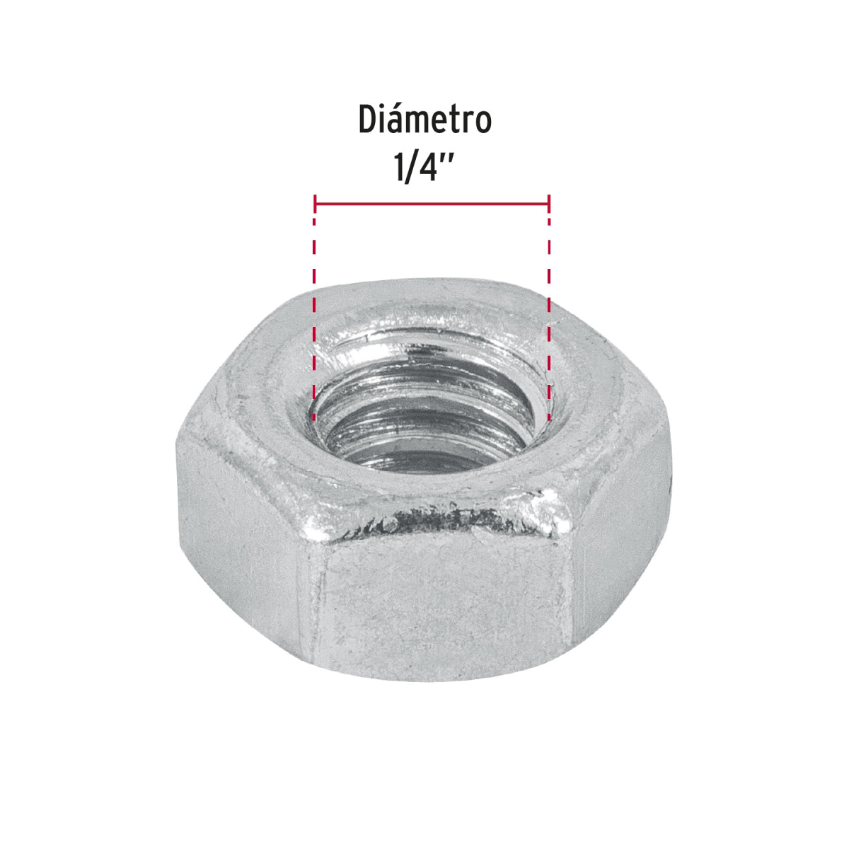 Blíster Con 25 Tuercas 1/4' Hex De Acero Galvanizado, TUE-1/4A, Fiero