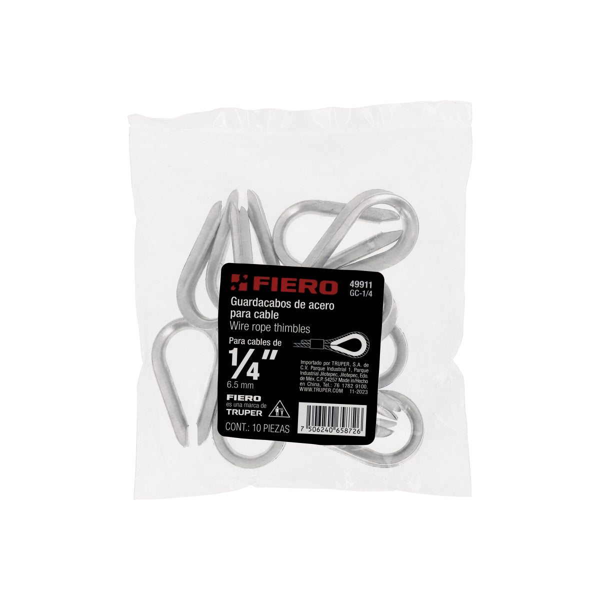 Bolsa Con 10 Guardacabos Para Cable De Acero De 1/4', GC-1/4, Fiero