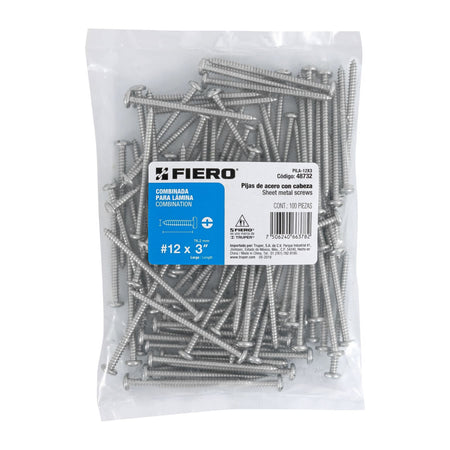Bolsa Con 100 Pijas Para Lámina, #12 X 3', PILA-12X3, Fiero