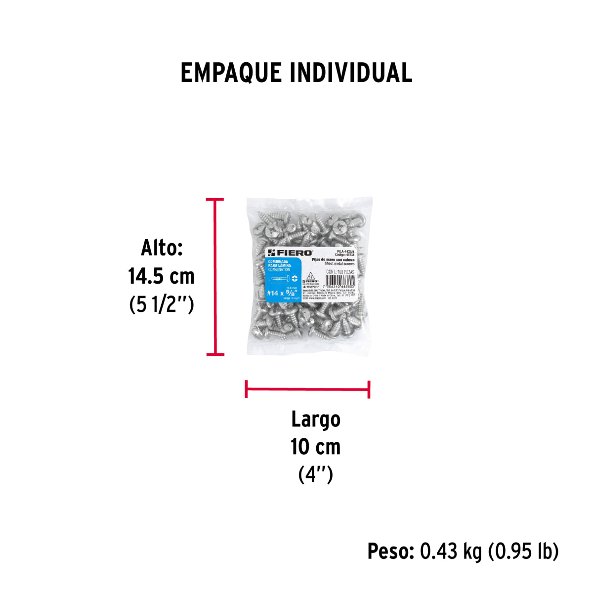 Bolsa Con 100 Pijas Para Lámina, #14 X 5/8', PILA-14X5/8, Fiero