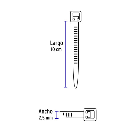 Bolsa Con 1000 Cinchos Plásticos 18 Lb, 100X2.5 Mm, Negros CIN-1810N-M, Volteck