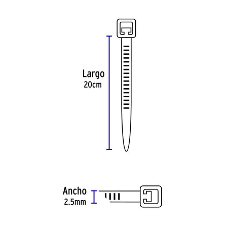 Bolsa Con 1000 Cinchos Plásticos 18Lb, 200X2.5 Mm, Naturles CIN-1820-M, Volteck