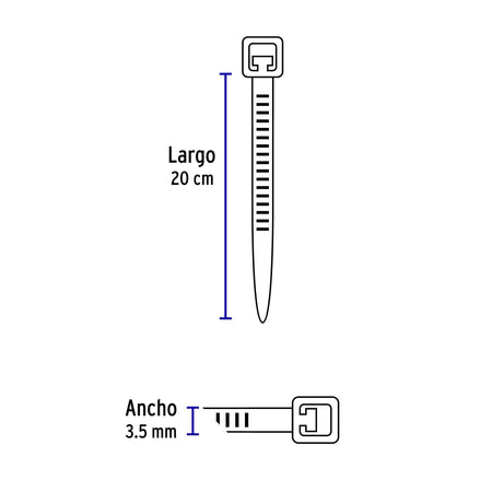 Bolsa Con 1000 Cinchos Plásticos 40 Lb, 200X3.5 Mm, Negros CIN-4020N-M, Volteck
