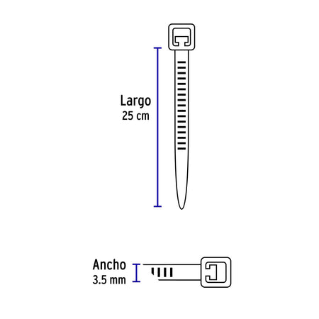 Cinchos plásticos naturales con resistencia de 40 lb y tamaño 250x3.5 mm. Destacan por su calidad, eficiencia y rendimiento en amarre seguro de cargas voluminosas, ideales para aplicaciones exigentes. Bolsa con 1000 unidades para proyectos duraderos.