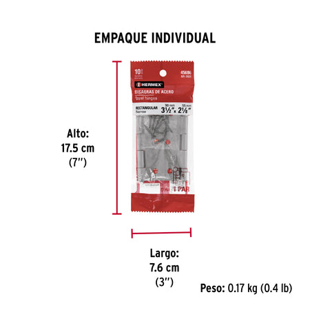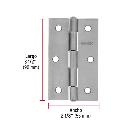 Bolsa Con 2 Bisagras Rectangulares 3-1/2', Acero Pulido BR-350B, Hermex