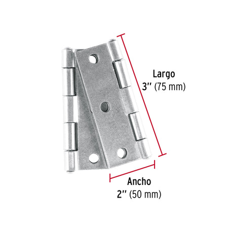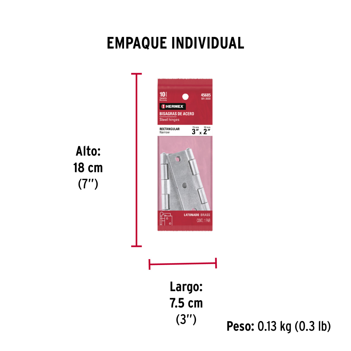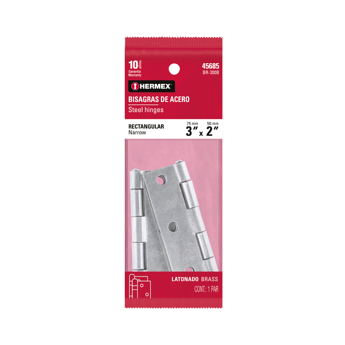Bolsa Con 2 Bisagras Rectangulares 3', Acero Pulido BR-300B, Hermex