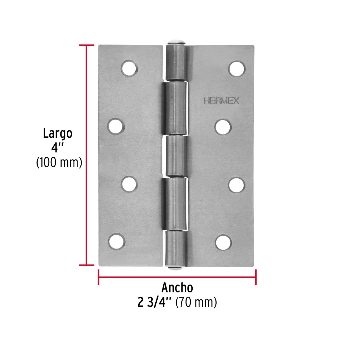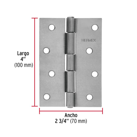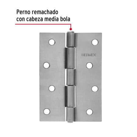 Bolsa Con 2 Bisagras Rectangulares 4', Acero Pulido BR-400B, Hermex
