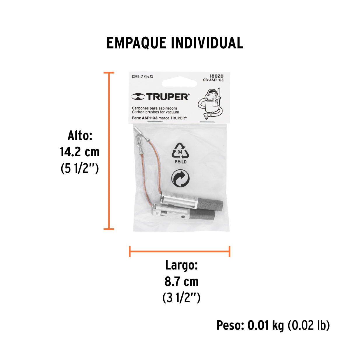 Bolsa Con 2 Carbones De Repuesto Para Aspi-03, CB-ASPI-03, Truper