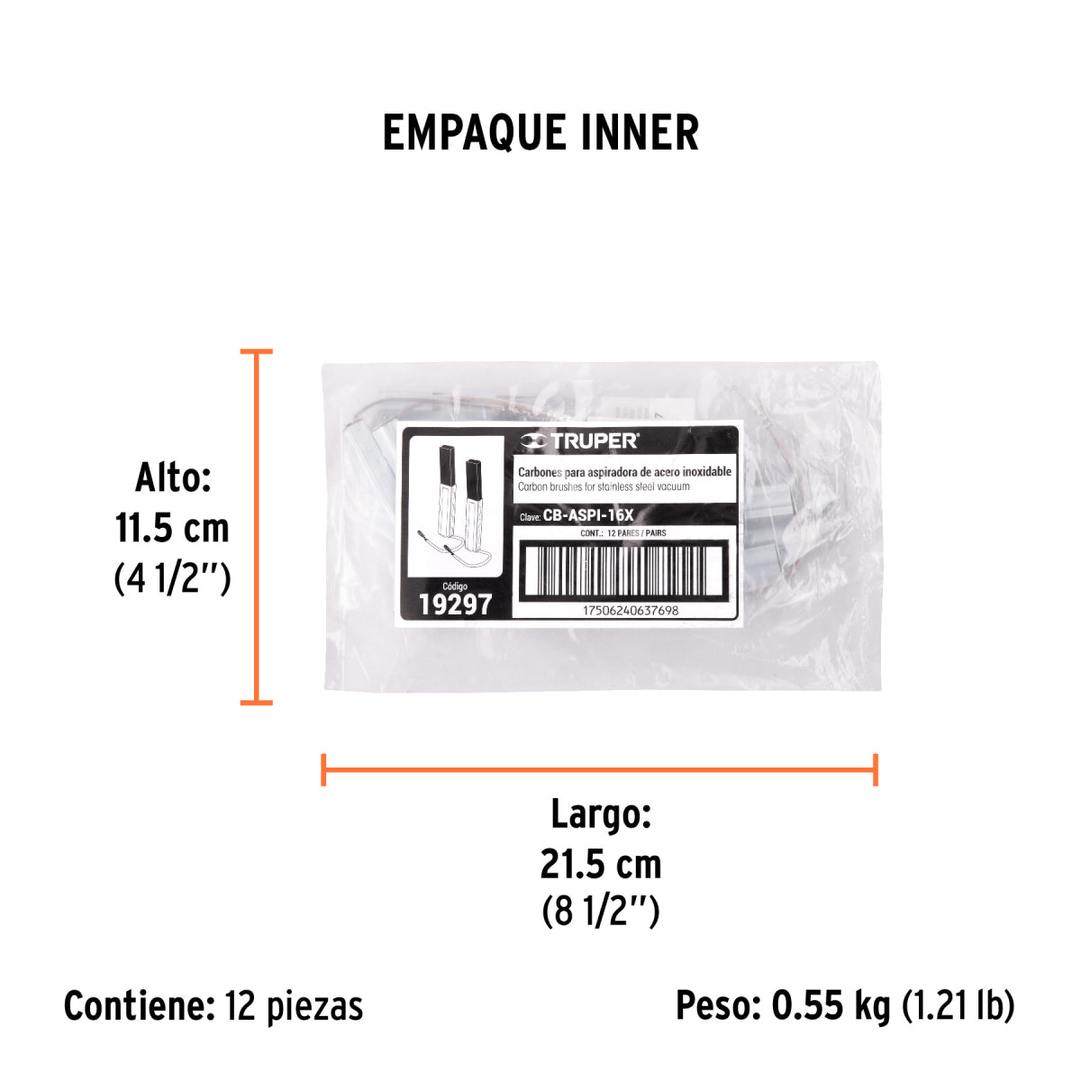 Estos carbones para ASPI-16X están diseñados para maximizar la eficiencia del equipo. De alta calidad, resisten el uso intensivo y ofrecen un rendimiento sobresaliente. Su medida exacta asegura un contacto constante que protege el motor y mantiene su potencia estable.