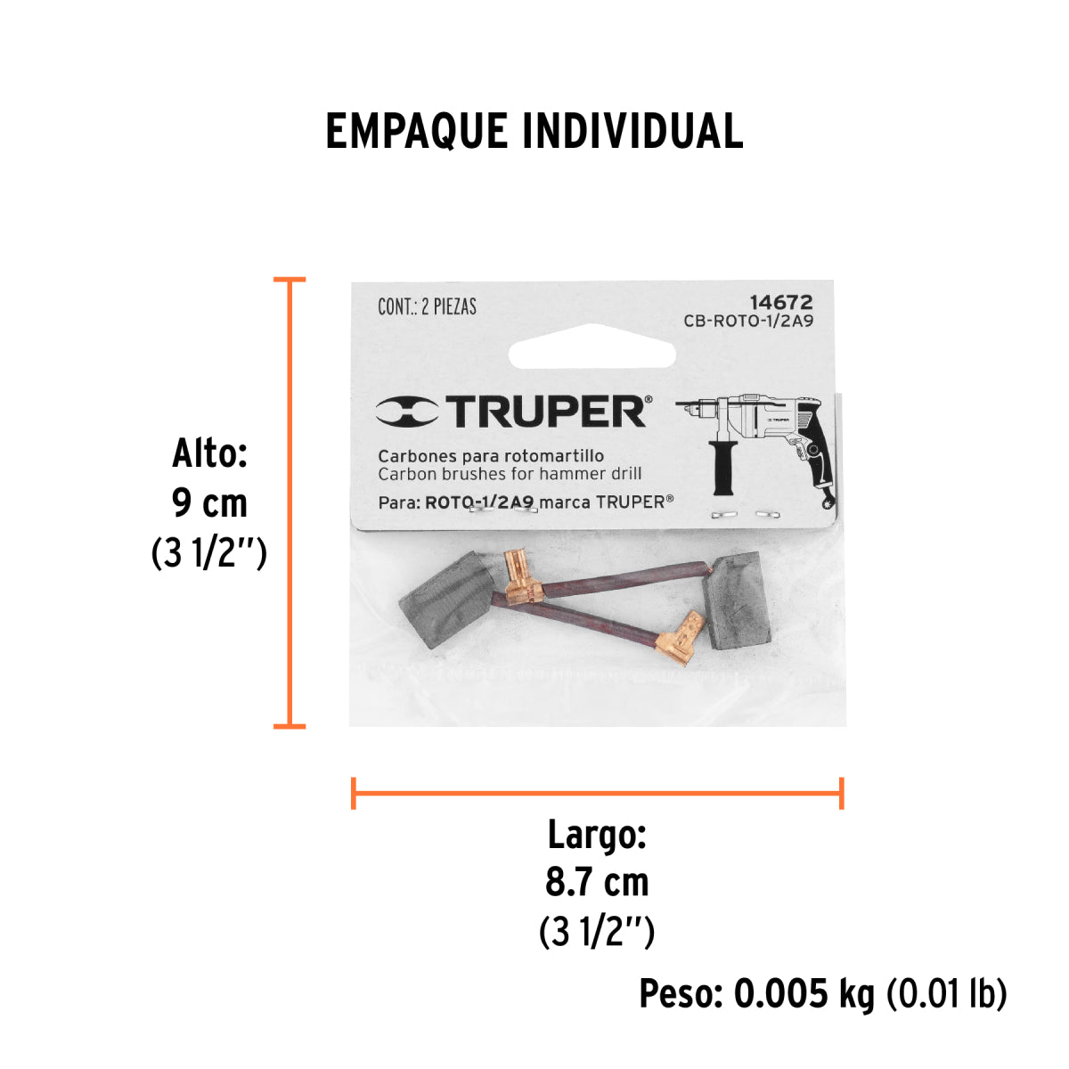 Bolsa Con 2 Carbones De Repuesto Para Roto-1/2A9, CB-ROTO-1/2A9, Truper