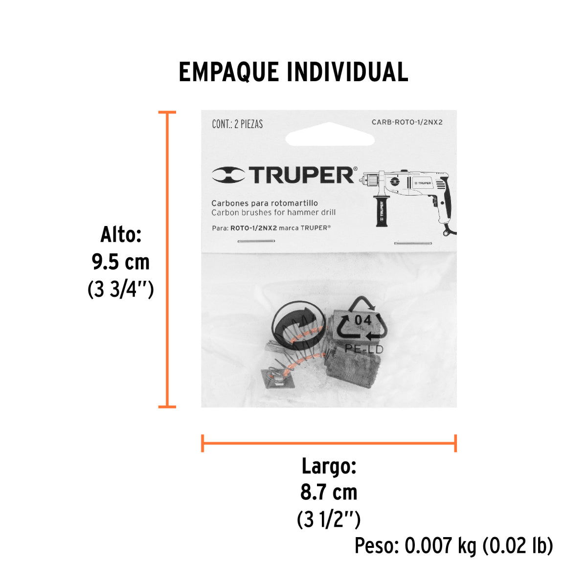Bolsa Con 2 Carbones De Repuesto Para Roto-1/2Nx2, CB-RT-1/2NX2, Truper