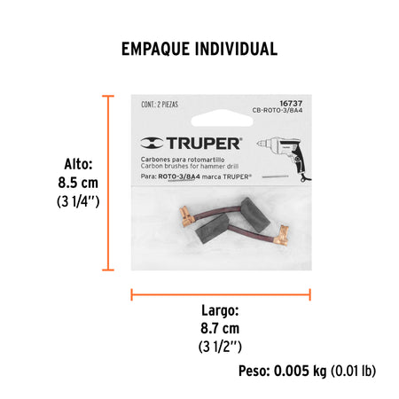 Bolsa Con 2 Carbones De Repuesto Para Roto-3/8A4, CB-ROTO-3/8A4, Truper