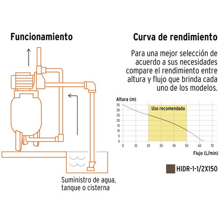 La Bomba Hidroneumática de 100 litros Hidr-1X100 de Truper es un equipo eficiente y versátil diseñado para el bombeo de agua en aplicaciones domésticas y comerciales. Con una capacidad de 100 litros, esta bomba es capaz de proporcionar un flujo constante y potente de agua, ideal para abastecer sistemas de riego, llenado de piscinas, suministro de agua en viviendas y pequeños negocios. Su diseño compacto y resistente permite una fácil instalación y transporte, mientras que su motor de alta potencia garantiza un rendimiento óptimo y duradero. Además, cuenta con un sistema de protección contra sobrecargas y un interruptor de presión automático para un funcionamiento seguro y eficiente. La Bomba Hidroneumática de 100 litros Hidr-1X100 de Truper es la solución perfecta para satisfacer las necesidades de agua en cualquier entorno.
