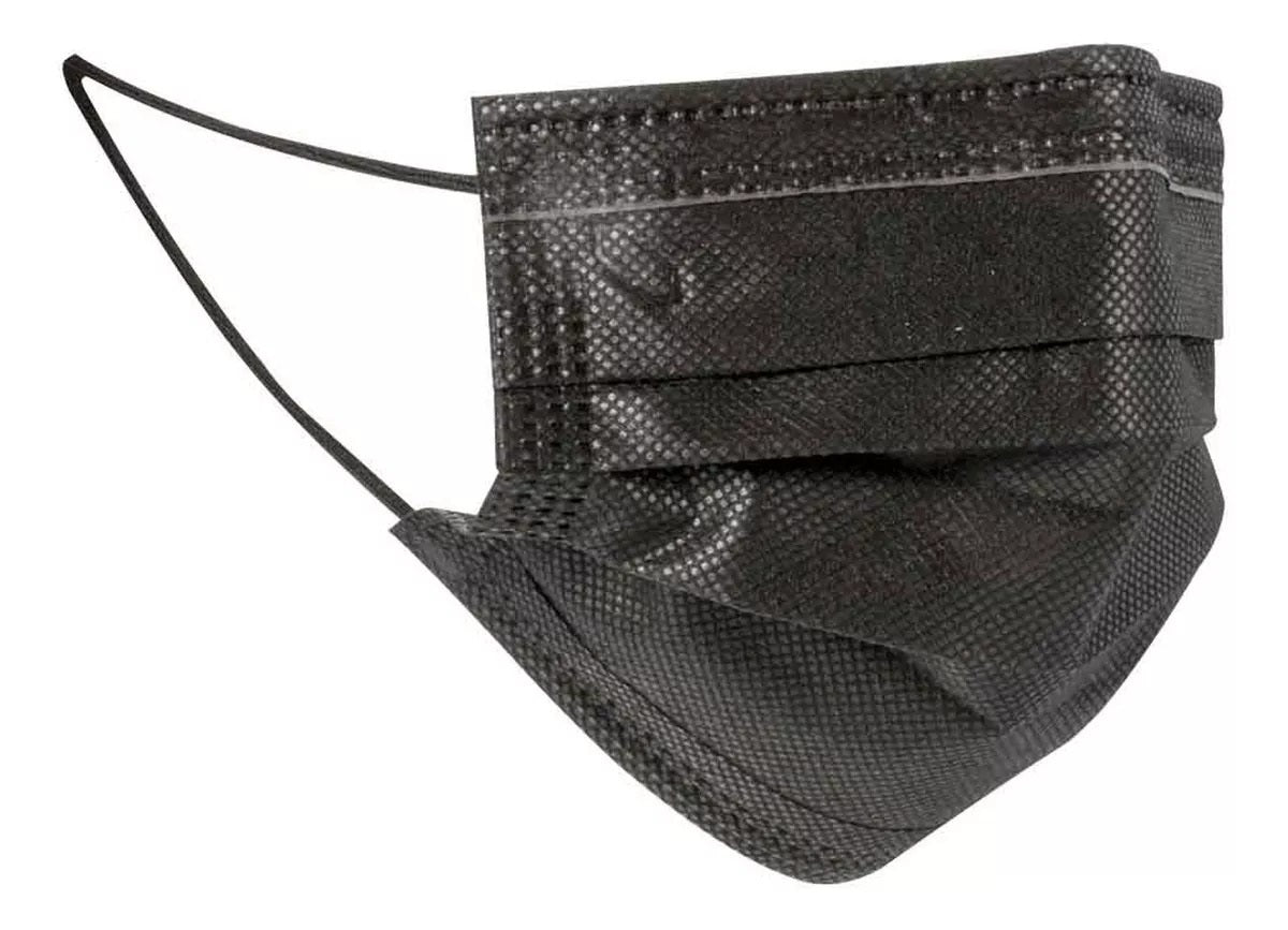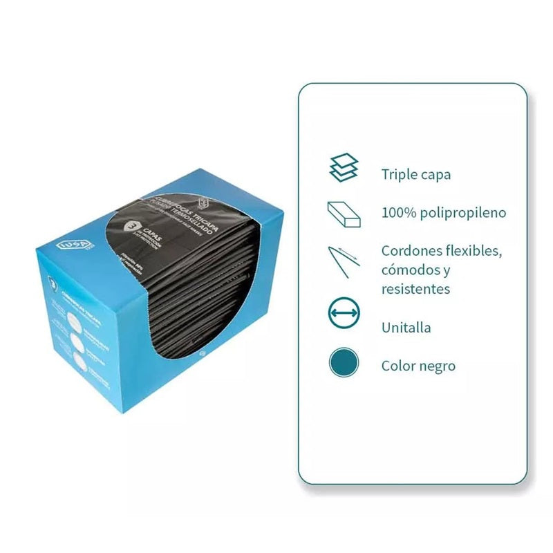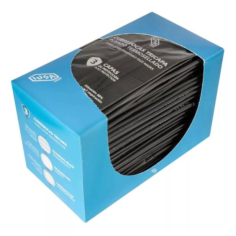 Cubrebocas Tricapa Negro Iusa Empaque Individual Caja de 50 Piezas
