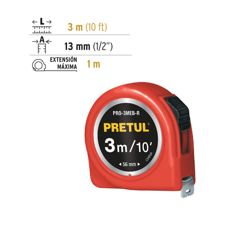 El Flexómetro Rojo 3M Pretul Pro-3Meb-R es una herramienta de medición de alta calidad y precisión. Con una longitud de 3 metros, este flexómetro es ideal para medir distancias largas de manera rápida y precisa. Su carcasa roja resistente y duradera protege la cinta de medición de posibles daños, asegurando su larga vida útil. Además, cuenta con un mecanismo de bloqueo que permite fijar la cinta en la posición deseada, evitando que se enrolle de forma accidental. Con marcas claras y fáciles de leer, este flexómetro es una herramienta esencial para profesionales y aficionados que requieren mediciones precisas en sus proyectos.