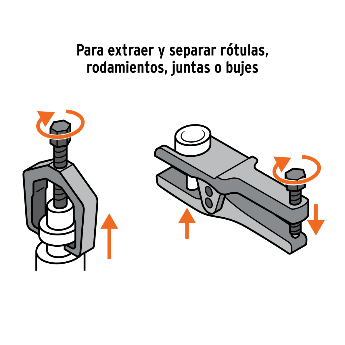 El Juego de extractor para rótulas (junta esférica), 5 pzas JGO-ER5 ofrece versatilidad total para trabajar en diversos modelos de automóviles. Este conjunto de horquillas y extractores permite retirar juntas desgastadas con un esfuerzo reducido. Fabricado con metales de alta dureza, soporta el trato rudo típico de los talleres mecánicos. Tener este kit a la mano garantiza que las tareas de suspensión delantera se realicen con agilidad, evitando golpes innecesarios.