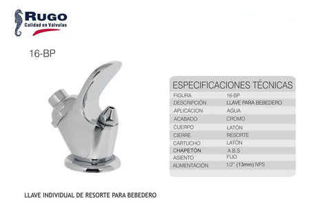Llave Para Bebedero Cromo Push 16-Bp Rugo